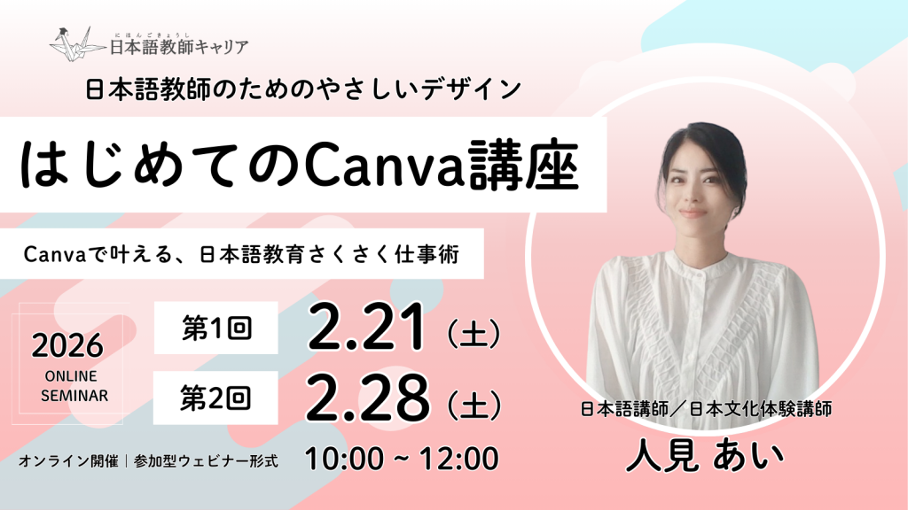 研修の詳細・申し込みはこちらから! https://nihongokyoshi-career.com/canvadesign-for-japanese-teachers-20260221/?utm_source=jp-online-event&utm_medium=referral&utm_campaign=canvadesign-event-20250221